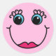 Esta senhora emoji tem um rosto rosa, olhos azuis, pestanas compridas e batom rosa quente.