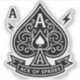 Ás de Espadas, monocromáticas, com filigrana de ornamentado, sotaques relâmpagos e uma faixa de faixa limpa para o seu texto personalizado. Linhas de vetor nítidas e um fundo transparente real fazem com que seja pop em produtos escuros ou leves.