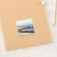Um dia encoberto de neblina na Baía de Morro Califórnia com ondas oceânicas atingindo as rochas na praia nesta lembrança de fotografia de praia. Este adesivo de guarda de viagem de fotos à beira-mar para seu laptop ou garrafa de água apresenta um roteiro cursivo preto sobre rochas de praia e céu de cinza.