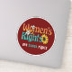 O adesivo do laptop Pro Choice traz o texto "Direitos das Mulheres são Direitos Humanos" com gráficos florais de margarida e girassol em fundo vermelho escuro.