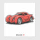 A lava red experimental hotrod with spiraled fenders. A striking cartoon design for fans of creative high energy car art.