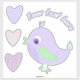 Adicione alguma personalidade aos pertences do seu filho com estas Lavandas Billy Bird Stickers. A design de pássaro fofo é original por benteg e certamente coloca um sorriso em seu rosto. Cada pedido contém 4 adesivos, além do texto que você escolhe, é perfeito para laptop, notebooks, garrafas d'água e muito mais.