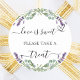 Um fundo branco na moda, decorado com flores lavandas e verde de eucalipto. Texto: O amor é doce, por favor, dê uma olhada.