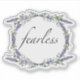 Uma design romântica e elegante com a palavra "destemido", enquadrada por eucalipto e lavanda pintada em aquarela.