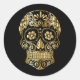 Prepare-se para outono, Halloween e Dia de Los Muertos! (Dia dos Mortos) com estes adesivos! Este design apresenta um intrincado e detalhado crânio de açúcar para celebrar o Dia dos Mortos. O crânio de ouro tem um aspecto metálico e é decorado com flores e padrões de espiral sobre fundo preto. Estes adesivos são personalizáveis, você pode mudar a cor de fundo se desejar. Basta pressionar o botão Personalizar para alterar a cor. Excelente para festas, Halloween, amantes de crânios de açúcar e Dia dos Mortos! Esta design também está disponível em sacos de presentes, papel de tecidos e outros itens de terceiros.
