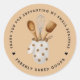 Obrigado de padaria personalizado moderno, seu adesivo. Um potente bolinhas marrom utensil de madeira giro no centro do adesivo, obrigado que você está apoiando minha pequena empresa está acima dele e abaixo dele está o nome da empresa.