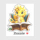 Um Dragão lendo um livro. Crianças adoram criaturas e criaturas!! Ler é um dever para as crianças!! Recompensa-os com um adesivo!! Esta imagem tem conteúdo generativo.