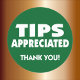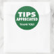Dicas apreciadas para o setor de serviços. Às vezes, os clientes não sabem quando é apropriado dar gorjetas, e esses adesivos colocados no seu local de trabalho ou em materiais de negócios vão informá-los de que o descarte é apreciado e lembrá-los a dar dicas. Perfeito para qualquer empresa de serviços pessoais: garçons e serviços de comida, motoristas, barman, cabeleireiros, empreiteiros, reparo de casas, manicuristas, terapeutas de massagem, camponeses ou tatuadores. Promova a etiqueta das dicas!