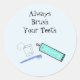 Um ditado dentário divertido, com um tubo de pasta de dente, fio dental e uma escova de dente azul. Mantenha boa higiene oral!