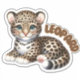 Este grande adesivo de berçário apresenta um lindo e irresistível leopardo-do-bebê ao estilo cartoon com uma expressão gentil e carinhosa. O leopardo é representado deitado, com suas pequenas patas escondidas sob seu corpo e sua cauda enrolada. Ele tem um padrão clássico de pelo visto, grandes olhos verdes expressivos, e um nariz rosa macio, acrescentando seu encanto. A palavra "LEOPARD" está escrita em letras ousadas e brincalhonas à direita do leopardo, complementando a design global que é favorável à criança.