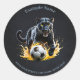 Adesivo Leopardo negro brincando com um futebol.