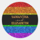 A bandeira LGBT do arco-íris faz brilhar o Sticker de casamento lésbica gay. Personalize faux sparkly convidando bandas com seus nomes. Celebre o seu amor com na moda único na mesma papelaria de casamento de gênero. Bandeja flexível LGBT em brilhos vibrantes vermelhos, laranja, amarelo, verde, azul e roxo vibrantes. *foto de faíscas não é uma falha real!