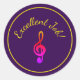 Música lições púrpura de recompensa, com um design de clave colorido e uma inscrição amarela personalizável. Colocado sobre um fundo preto, este adesivo é excelente de encorajar seus alunos em sua jornada musical.