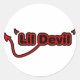 Lil Devil - Um design de texto carinhoso em vermelho e preto com chifres demoníacos e uma cauda forcada.