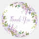 Adesivos personalizados de agradecimento com um buquê floral em aquarela pastel lilás roxo e verde. Use as ferramentas de design para alterar a cor do fundo e as fontes para personalizar ainda mais seu design único.