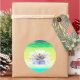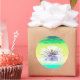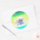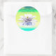 Um adesivo com a minha trabalho de arte digital em verde e amarelo de um lírio de água branca na água.