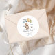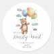 Lindo adesivo redondo de festa de bebê com balão de urso mal podemos esperar. Fácil de alterar o texto. Desenho aquarela fofo para festa de bebê.