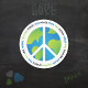Um adesivo redondo com um gráfico estilizado do globo, um símbolo da nossa interconectividade como uma comunidade global. Envelhecer a Terra, um símbolo branco primitivo de paz e a palavra Paz em várias línguas, um emblema universal de tranquilidade enviando uma mensagem de esperança, unidade e o anseio partilhado por um mundo pacífico. Uma criação original do Mango Moon Studio.
