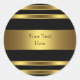 Adesivos pretos e dourados com listras douradas ricas e bonitas em um fundo preto. Adicione texto para personalizar para o seu evento.