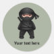 O adorável chubby, mas assustador, pequeno ninja está vestido de roupa preta e carregando katana - espada tradicional japonesa.