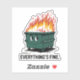 Este adesivo engraçado apresenta uma lixeira em chamas com a frase irônica "Tudo Bem". Perfeito para quem ama humor negro e memes relacionáveis! Este adesivo de vinil durável é ótimo para laptops, garrafas de água e muito mais. Abrace o caos e deixe todos saberem que você está lidando com tudo... tipo isso.