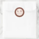 This elegant wedding sticker design features a sophisticated and timeless style, perfect for expressing gratitude to guests. The circular motif with clean lines and minimalist typography creates an understated yet refined look, while the warm brown color palette adds a touch of classic charm. Ideal for special occasions like weddings, this design conveys appreciation in a tasteful manner that complements any decor. Its simple yet stylish presentation makes it versatile for various uses, ensuring your heartfelt message stands out beautifully.