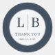 This elegant wedding sticker design features a minimalist and sophisticated style, perfect for expressing gratitude on your special day. The circular motif with clean lines and classic typography creates an air of timeless elegance, while the navy blue and white color palette adds a touch of understated luxury. Ideal for heartfelt thank-you notes or as part of your wedding stationery suite, this design conveys appreciation in a refined manner that complements any modern celebration.