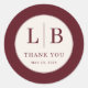 This elegant design features a sophisticated maroon and white color palette, creating an air of timeless elegance perfect for wedding stationery. The circular motif with bold typography at the center exudes a classic charm, while the minimalist layout ensures it remains versatile and refined. Ideal for expressing gratitude to guests, this sticker adds a touch of class to your special day's thank-you notes or favors. Its clean lines and simple yet striking aesthetic make it easy to customize further, ensuring it complements any wedding theme seamlessly.