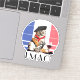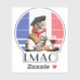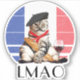 Se você tentar pronunciar LMAO, você soa como um gato francês! "Le meow!" Engraçado reviravolta à abreviação de Laughing My A@$ Off. Apresenta um gráfico de um gato francês com bigode e veste um berço e um lenço vermelho. Ele está sentado sobre um fundo das cores da bandeira francesa, tem um copo de vinho tinto e está segurando um pão francês.