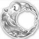 Design tribal apresentando um lobo uivante numa lua crescente com tons de preto, cinza e branco. Pelo Paxdomino.