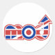 Design do logotipo do modelo de aparência retrorreflector com um alvo mod e uma tomada de união na forma das letras MOD em branco e azul vermelho