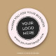 Adicione um toque pessoal à sua embalagem comercial com o nosso adesivo redondo clássico do logotipo de negócios, "Obrigado cor-de-rosa"! Este design profissional minimalista oferece a canvas perfeita para mostrar a sua marca. Personalize-o facilmente com seu logotipo, site ou qualquer mensagem para expressar gratidão aos seus clientes de forma na moda. O pano de fundo cor-de-rosa suave adiciona uma vibração acolhedora e moderna, enquanto o design limpo e simples garante que sua marca se destaque. Ideal para embalagens, notas de obrigado ou materiais de promocional, este adesivo permite criar uma impressão duradoura sem esforço. Personalize on-line e eleve a aparência de sua empresa com este adesivo redondo elegante! Design do Ana Garza/Kardz Studio. Se tiver alguma dúvida, por favor, sinta-se à vontade para me contactar através do Zazzle Chat.