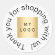 Adicione o logotipo da sua própria empresa. Fundo branco colorido. Texto: Obrigado por comprar conosco!