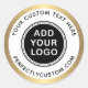 Adesivo de logotipo elegante, redondo, personalizado com texto circular e borda inclinada do ouro impressa com efeito de metal escovado (simulado no trabalho de arte). Campos de modelo personalizáveis para o texto superior e inferior. Siga-nos no Instagram: @business.perfectlycustom e no Facebook: @business stationery para produtos, notícias e vendas relacionados a negócios.