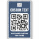 Decalque de vinil branco e azul escuro com seu logotipo personalizado, código QR e texto personalizado. Excelente de negócios para permitir que seus clientes pesquisem mais informações, ofertas, menu on-line, paguem etc. Os autocolantes são à prova de desvanecimento, à prova de água e resistentes ao arranhão. As cores podem ser personalizadas com a ferramenta design.
