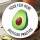 Etiquetas do logotipo do nutricionista da dietista do abacate ou selos verdes feitos sob encomenda do envelope. Os acessórios personalizados para o consultório particular, o negócio, a empresa, o restaurante, o partido etc. adicionam seus próprios nome, nome da empresa, citações ou dizer engraçado, slogan etc. Também agradável para o vegan, vegetariano, instrutor da malhação, planejador da dieta, amante da comida, instrutor pessoal, cozinheiro do cozinheiro chefe, escola caçoa etc.