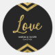 Este adesivo redondo moderno apresenta um elegante diafrão geométrico e a palavra "Amor" em ouro falso contra fundo preto. É um adesivo versátil que você pode personalizar para vários eventos que você está planejando celebrar como casamento, noivado, aniversário etc. Confira os convites e itens correspondentes aqui http://www.zazzle.com/collections/modern_faux_gold_chevron_celebration_collection-119531050277382712?rf=238364477188679314 Personalize-o com seus detalhes substituindo o texto do marcador de posição. Para obter mais opções, clique no botão "Personalizar". *Observe que a Marca d'água do Zazzle que aparece na visualização de zoom NÃO aparecerá no produto impresso final. © Rosewood e Citrus