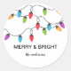 Luzes de Natal festivas com fonte moderna e script, FELIZ & BRILHANTE, adesivo de nome.
