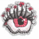 Vinheta-pente-penteada com uma ilustração digital que mostra um olho vermelho assustador com pestanas que têm suas próprias pestanas e que estão terminando em flores vermelhas e flores cinzas sobre fundo azul alegre. Quando, por vezes, os vossos olhos estão tão tensos que têm a certeza de que irão derreter nos próximos três segundos. Esta design psíquica é só para você se você gosta de cores brilhantes e arte estranha.