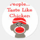 Sock Monkey humor "Pessoas Taste Like Chicken", em t-shirts, canecas, tote bags, botões, chaveiros...para todas as idades...adorável...