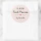 Um adesivo moderno de "macarões franceses" com uma fonte preta sobre um fundo rosa pincelado embelezado por um coração vermelho giro. Personalizar texto.