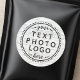 Etiquetas redondas com um fundo branco impresso, madeira de cinza leve e fundo de modelo para o seu logotipo personalizado, fotografia, código QR ou outro gráfico. Adicione texto, mova e redimensione elementos com a ferramenta design. Siga-nos no Facebook: @business stationery para mais produtos, notícias, vendas e muito mais.