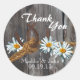 Madeira de celeiro velha e ferraduras amarradas com uma corda e decoradas com margaridas para o casamento do celeiro do seu país.