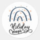 Roteiro e tipografia de magia de feriado com um arco-íris Boho azul com estrelas de ouro falso para a temporada de férias. Etiqueta de envio ou decoração. Muitas formas de etiquetas disponíveis para transferência de design.