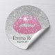 Makeup Artist Pink Lábios Moderno Silver Glitter Beauty Salon Stickers.