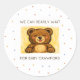 Adicione um toque doce e sofisticado à sua celebração com esses adesivos de favor de baby shower "We Can Bearly Wait" (Mal podemos esperar) com ursinho. Apresentando um encantador ursinho desenhado à mão, emoldurado por delicados pontos de confete, o design combina o calor nostálgico de um livro de histórias com uma estética moderna e limpa.
