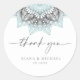 Um padrão de mandala legado em um gradiente de azul-ovo e cinza quente do soft robin junto com texto de script fluindo dá a esta elegante suíte de casamento que é luxuoso. Os adesivos personalizados 'Obrigado' mostrados aqui com uma borda mandala, permitem que você edite facilmente seus nomes e a data do casamento usando o modelo fornecido. Procure ID968 para ver todas as peças correspondentes neste belo conjunto de casamento.