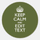 O teu "Calm" diz num fino decor de cor verde-oliva. Um estilo "Manter Calmo" personalizado dizendo em um presente gentil. Humorístico ou caprichoso experimente suas palavras criativas em duas linhas editáveis de texto. Lembre-se de usar letras CAPITAL para obter melhores resultados. Use o link "Perguntar a este Designer" para entrar em contato conosco com suas solicitações especiais de design ou para obter assistência com seu projeto de personalização.