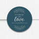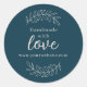 Feita à mão com amor", adesivos azuis a gasolina com adesivo personalizável com website. Ideal para embalagens de produtos de pequenas empresas. Cor de fundo personalizável. Arte original de artistas e suas próprias ilustrações. Itens correspondentes disponíveis. Entre em contato comigo para obter mais informações sobre personalização e solicitações especiais. © Zoe Chapman Design