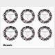 Saquetas personalizadas que dizem Ficas de Mão com Amor com pequenos corações vermelhos. Projetado com um padrão elegante feito com ilustração aquosa de flores cor-de-rosa com folhas e caules de cinza azul. Fundo preto clássico atrás do padrão. Um círculo branco colocado sobre o topo com a sua dentro de texto.